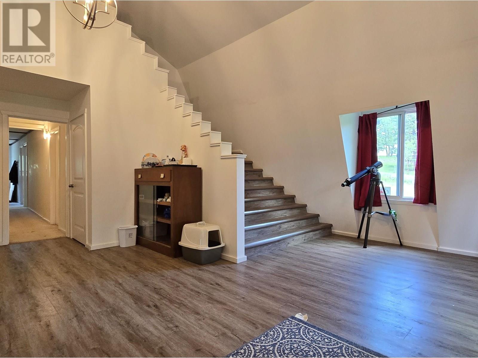 Breathtaking 25-acre property located just 10 kms from Williams Lake! This stunning property spans across two titles, with full fencing, a private driveway and developed hobby farm areas. The unique 7 bed, 3 bath home is ideal for families, featuring a large foyer, open concept country kitchen, and spacious living room. The primary bedroom has a wonderous layout, with access to an private loft space. Step outside to enjoy the full-length covered porch, multiple yard spaces, gardens and picturesque pond. Complete with animal pens, barns, a high producing well and a detached workshop. Stepping onto this property immediately feels like home. (id:4069)